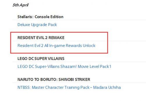 近日PlayStation欧洲官方宣布,《生化危机2:重制版》将于4月5日推出能解锁游戏内全部奖励(All In-game Rewards Unlock)的DLC。但该DLC还未上线,暂不知道其售价。