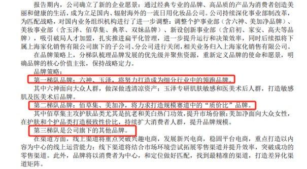 证券之星注意到,今年上半年,上海家化深化事业部制改革,将原有事业部架构重新划分为个护事业部、美妆事业部和创新事业部;多品牌矩阵也被重新定位,玉泽成为与六神平起平坐的公司“头牌”,也就是第一梯队品牌,第二梯队品牌为佰草集和美加净,力求打造规模赛道中的“质价比”品牌,公司旗下的其他品牌均归为第三梯队。