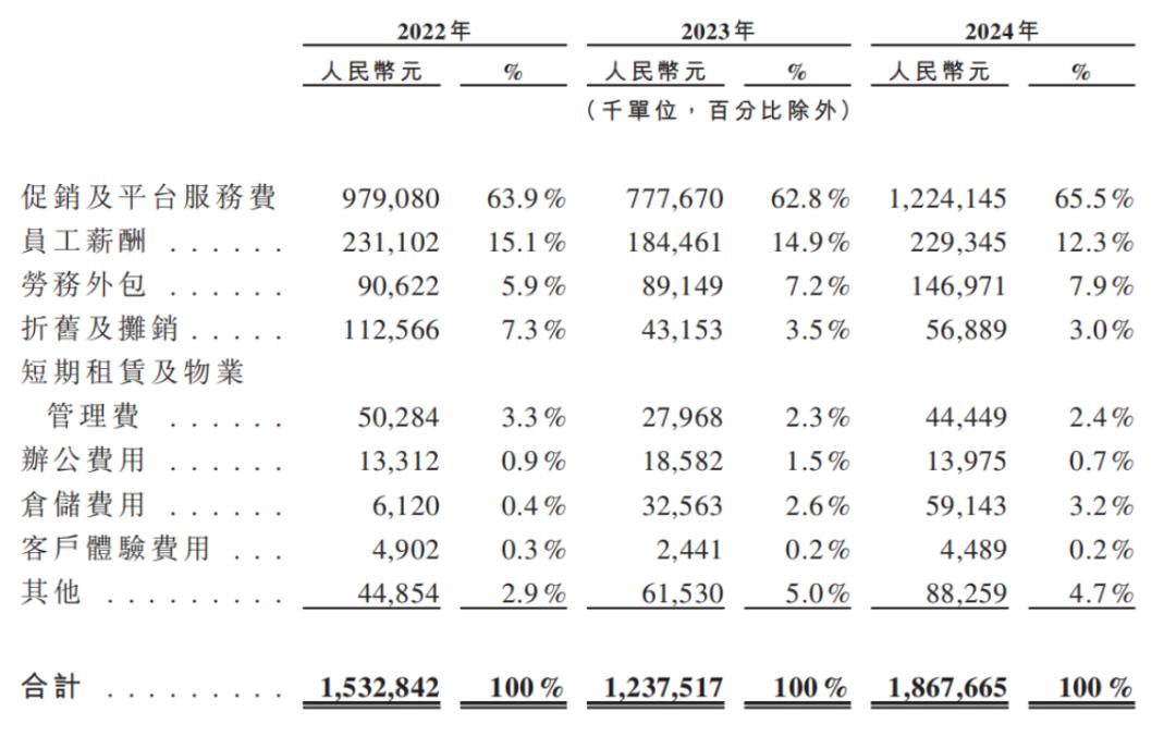 2022年-2024年,三只松鼠销售费用分别为15.33亿元、12.38亿元、18.68亿元。其中,促销及平台服务费累计29.81亿元,占销售费用的比例超64%。