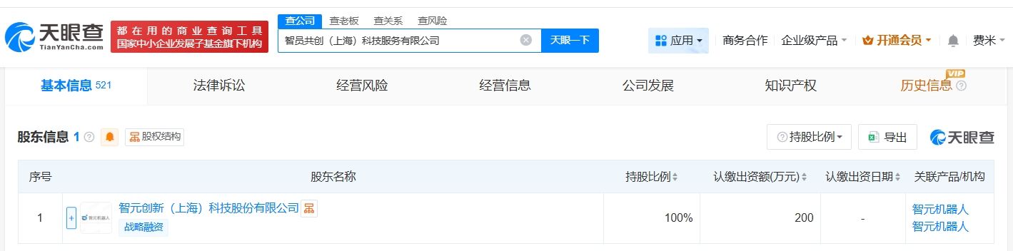 天眼查工商信息显示,3月9日,智员共创(上海)科技服务有限公司成立,法定代表人为邓泰华,注册资本200万人民币,经营范围包括企业管理咨询、劳务服务、信息技术咨询服务等。股东信息显示,该公司由智元机器人关联公司智元创新(上海)科技股份有限公司全资持股。