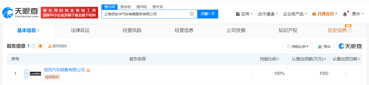 领克汽车在上海成立销售服务公司 注册资本1000万观点