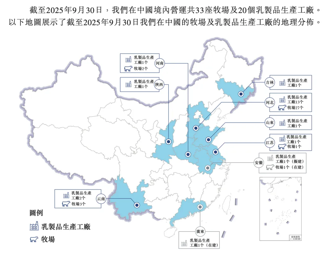 截至2025年9月30日,君乐宝在中国境内运营33座牧场及20座乳制品生产工厂;公司总计拥有192057头奶牛,成母牛单头年均产奶量达12吨。这意味着大量的固定资产投入和持续的运营成本。