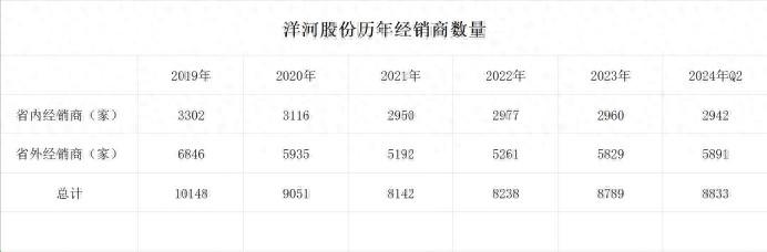 公开资料显示,2018年,洋河股份拥有3万多名地面推广人员。2019年,洋河股份经销商突破1万家。
