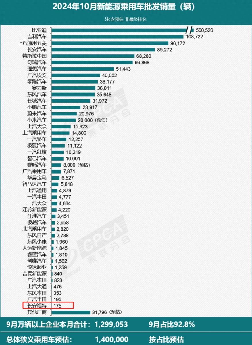 更糟糕的是,在新能源车市场,长安福特的表现更是惨淡,福特电马等新能源车型月销量维持在百台上下,而在新能源车批发量排行榜中,长安福特甚至位居倒数,其新能源转型的成效可见一斑。