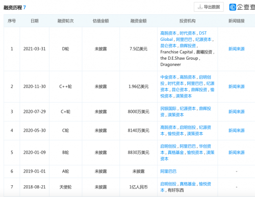 据企查查统计的数据显示,2020年社区团购公开融资事件达19起,是历年来的第二高,但2020年社区团购披露融资金额高达171.7亿元,同比增长356.3%,创下了历史新高。其中,行业头部玩家十荟团在2020年拿到4笔融资,2021年上半年完成7.5亿美元融资,两年融资超过4亿美元。对比之下,其2018和2019两年才完成了两轮融资。