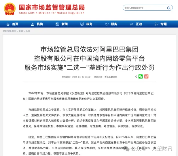 同样在平台治理层面,此次阿里喊出“绝对第一”,难免触发人们的历史联想:早在2021年4月,阿里就因实施“二选一”等垄断行为被市场监管总局开出182.28亿元罚单并要求全面整改……