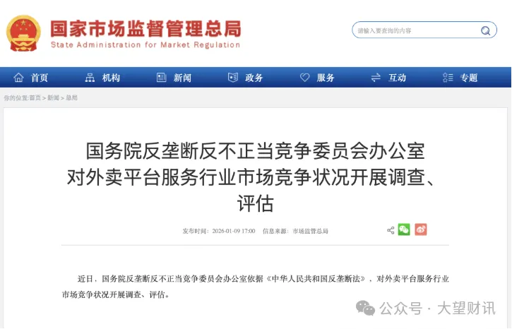 但不到24小时,更“硬”的监管讯号紧随其后——新华社援引市场监管总局消息称,国务院反垄断反不正当竞争委员会办公室将依据《反垄断法》,对外卖平台服务行业市场竞争状况开展调查评估,点名“拼补贴、拼价格、控流量”等问题突出,并强调要推动形成“优质优价、良性竞争”的市场秩序。