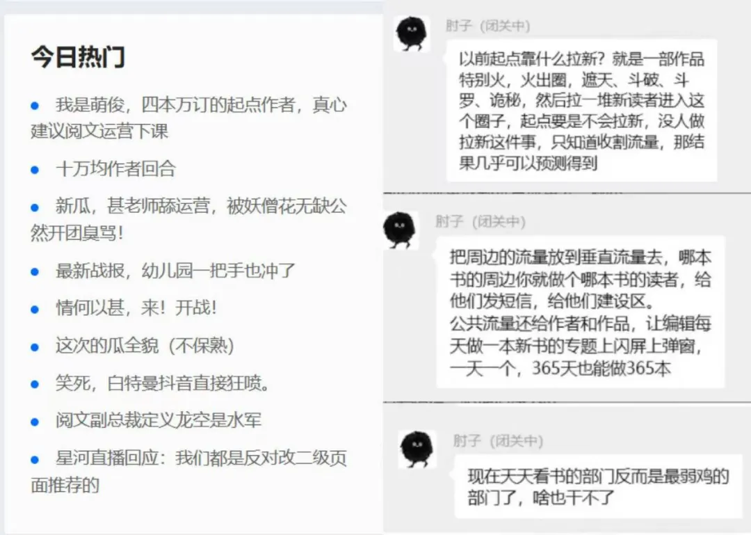 这一发言进一步点燃舆论,很快情何以堪、会说话的肘子、妖僧花无缺等起点白金、大神作者也陆续发文,对起点运营表示不满,认为起点正在偏离网文平台本质,应该把流量还给作者和作品本身。