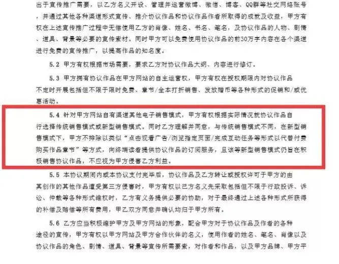 争议的焦点是一份被作者质疑为“霸王条款”的新合同。作者们认为,合同在强调双方仅为“委托关系”的同时,实质上削弱了作者对作品版权的支配力。更关键的担忧在于,合同规定,作品会在免费阅读等新型阅读平台分发。