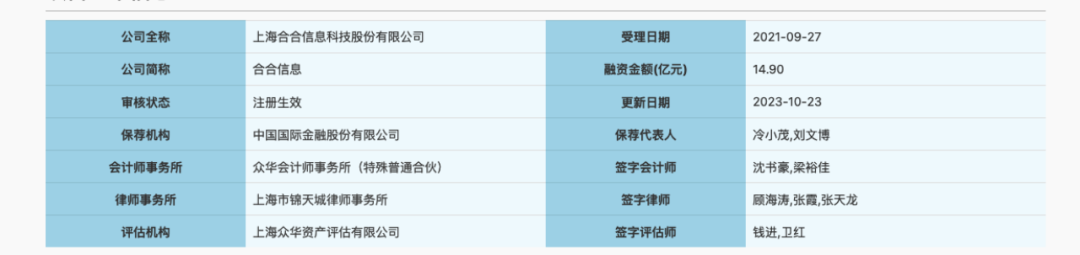 合合信息保荐机构为中国国际金融股份有限公司(以下简称“中金公司”)保荐代表人冷小茂,刘文博。会计师事务所为众华会计师事务所(特殊普通合伙)签字会计师沈书豪,梁裕佳。