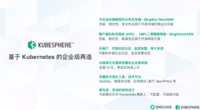 Kubernetes强大的生态能支持KubeSphere走更远 事实上关于容器技术,青云QingCloud 应用及容器平台研发团队在Kubernetes基础上打造出KubeSphere这款专业企业级容器平台产品,为企业用户提供简单易用的高性能可伸缩的容器应用管理服务。