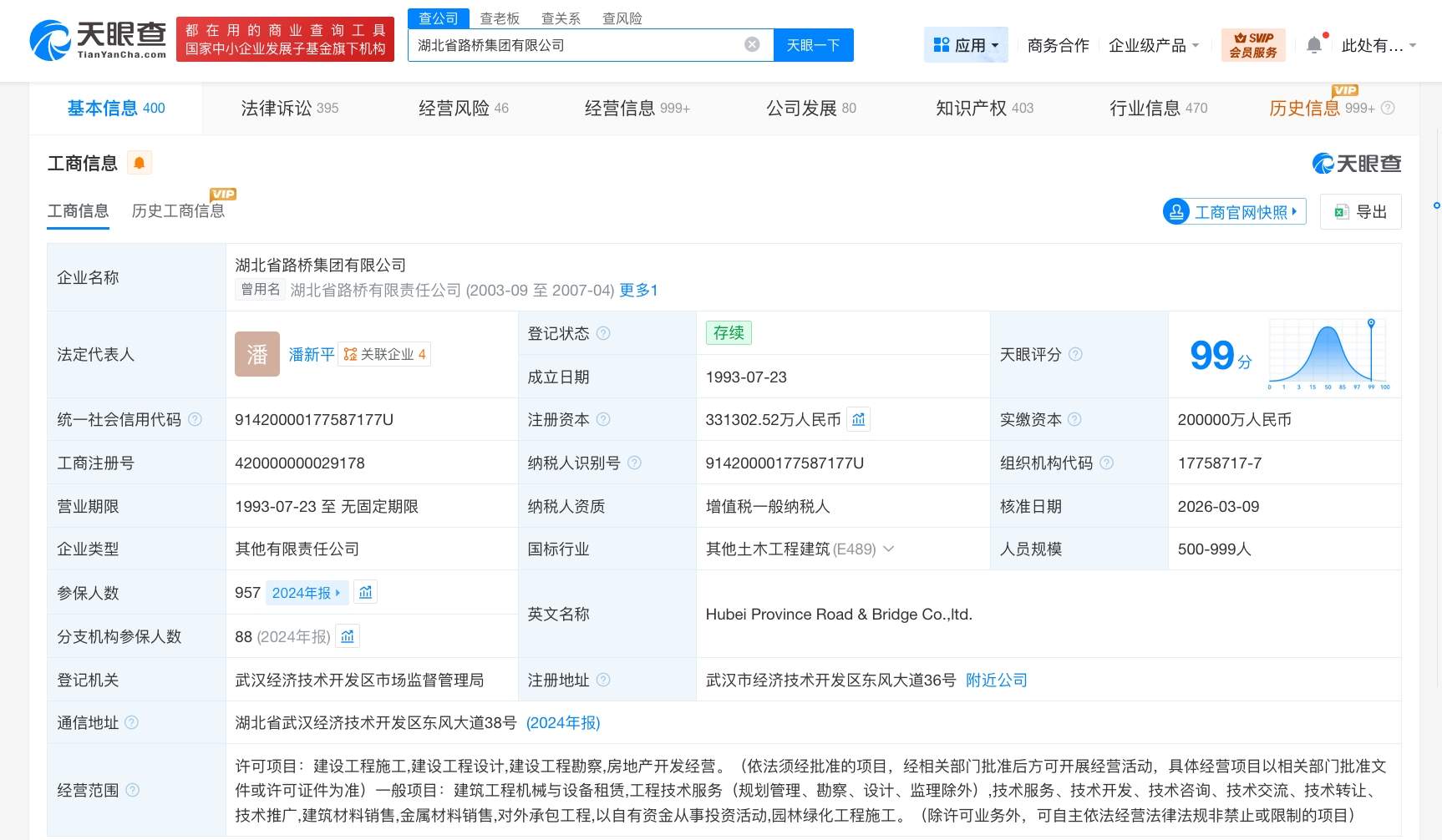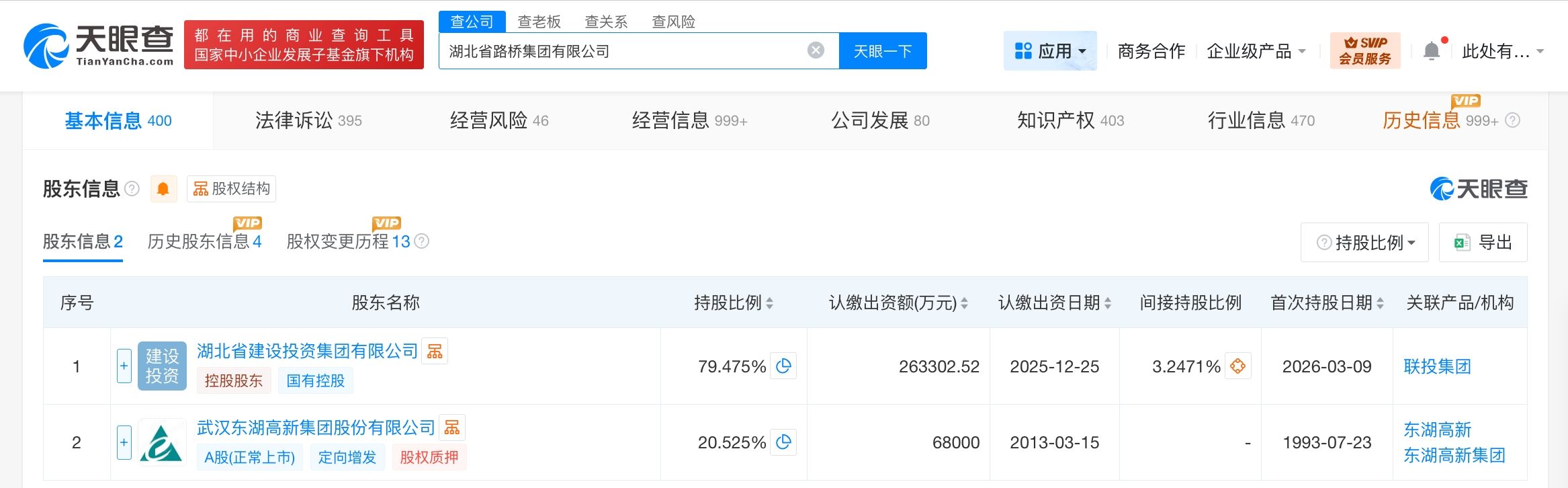 湖北省路桥集团有限公司成立于1993年7月,经营范围包括建设工程施工、建设工程设计、建设工程勘察、房地产开发经营等。股东信息显示,该公司由湖北省建设投资集团有限公司、东湖高新(600133)共同持股。