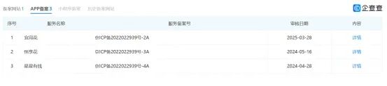 企查查显示:目前悦响科技公司的APP备案有三个:宜用花、恒享花、星星有钱。备案时间为2024年至2025年,目前,星星有钱在小米应用商店可以下载,下载量为3.3万。