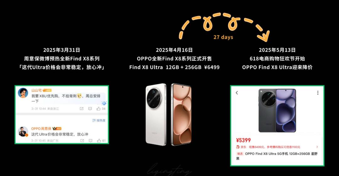 在发布后不到一个月,售价6499元的OPPO Find X8 Ultra入门款突然进入“国补”范围,价格变相降低近1100元,由此引发众多已购机用户的不满,他们指责周意保“食言”,违背承诺。
