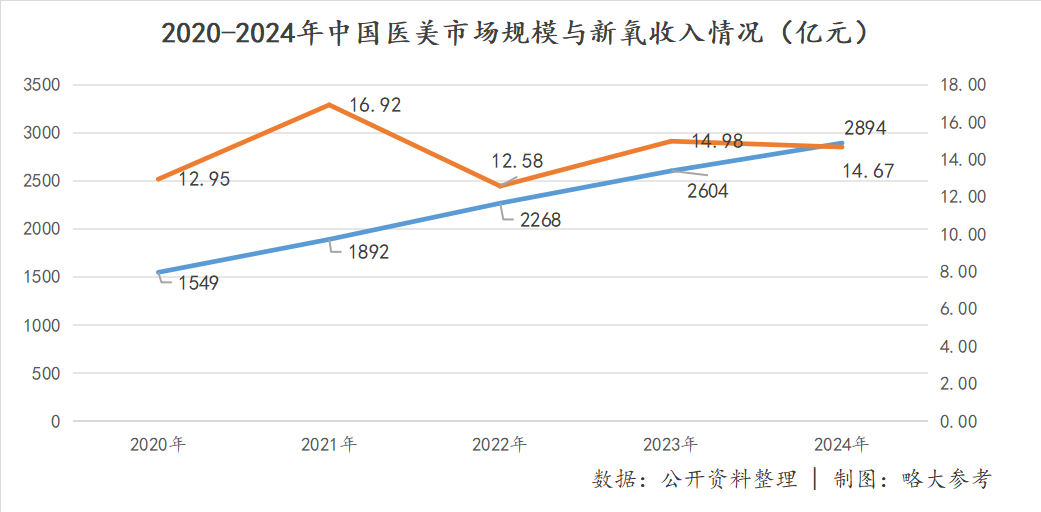 成立20余年的新氧,虽然完成早期教育市场的使命,却没有兑换出资本市场对其的乐观预期。2013年以来,中国医美市场空间膨胀百倍至3000亿元,新氧的收入迟迟突破不了15亿元,亏损却越来越严重。
