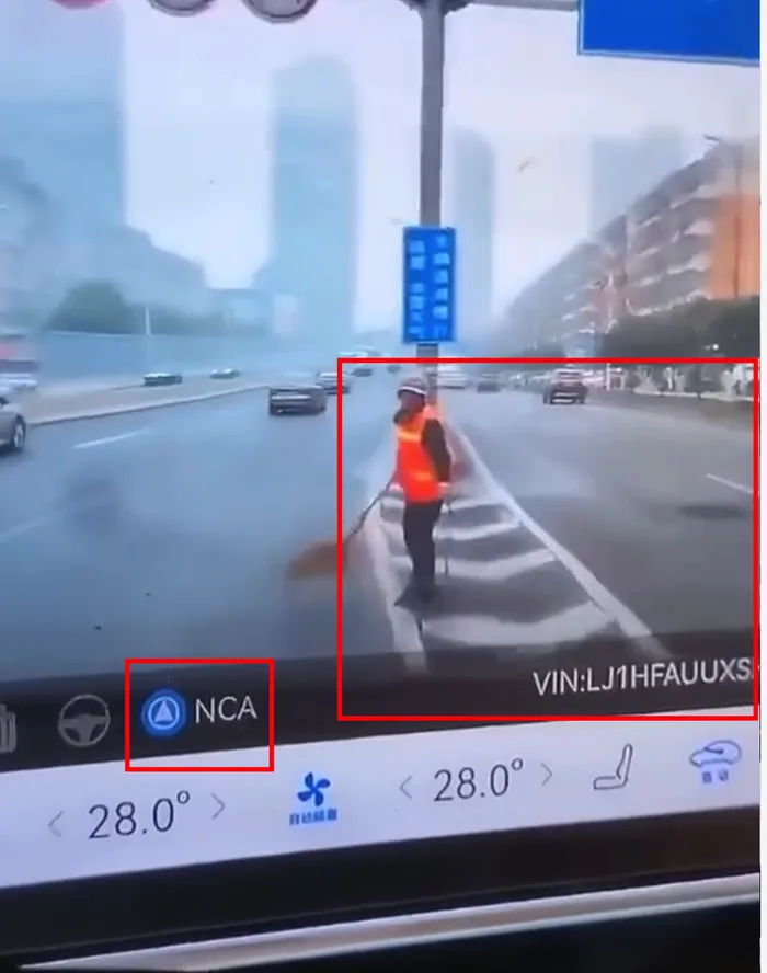 新黄河·大鱼财经记者获取到的车辆视频显示,涉事车辆仪表内容显示一直处于“NCA”开启状态,在视频最后一秒,车辆从NCA跳转到AEB状态。