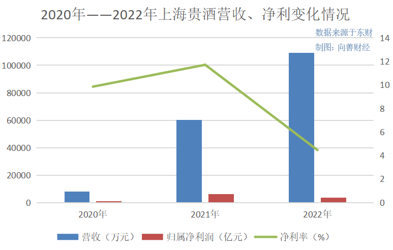在回复中,上海贵酒解释称,公司2021年营业收入增长率较高主要系2020年营业收入基数较低;2022年营收增长主要是顺应了白酒行业稳步发展的趋势,同时其在产品品质、品牌营销、渠道拓展等方面的不断深耕得到了市场认可,以及上海贵酒在2022年进一步加大加强了广告营销投入和销售渠道建设等等。