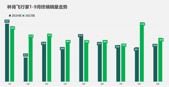 在产品端,也就是双旗舰——林肯飞行家和林肯领航员,这两款车在国内的市场表现已经被边缘化。首先是飞行家,如下图所示今年起到9月份起累计终端销量只有3082辆,月均销量只有300辆左右,连细分前200名都进不了。而林肯领航员则更是稀少,甚至连一个明确的数字都很难查到。