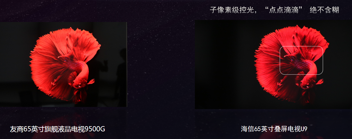 据悉,海信U9在业内首先使用了5颗画质处理芯片,因此在算法控制下,背光层、控光层和图像层实现协同,并通过对子像素级的控光,实现了传统液晶面板不可企及的150000:1的对比度,从而海信具有在画质表现上与索尼一决高下的技术实力。