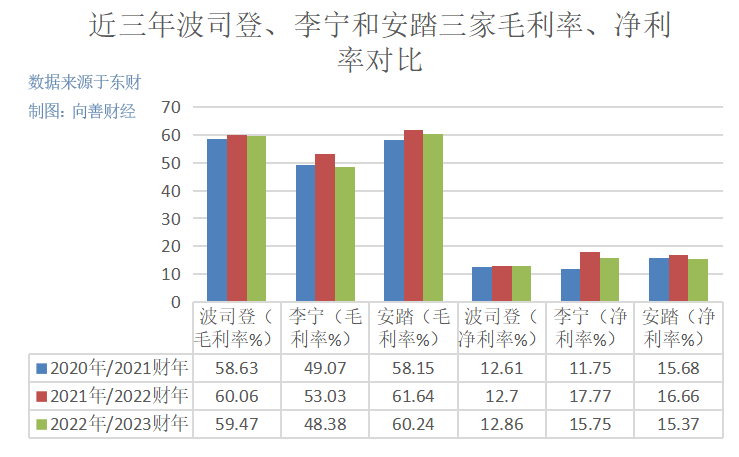而正因为销售费用过多,以至于波司登的毛利率虽然经常高于同处港股的李宁,甚至是能与营收相差数倍的安踏相媲美,但净利率却常年被多元化的李宁、安踏拉开了一大截。