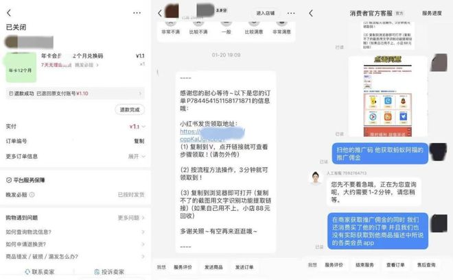 看到下载链接,张兴就有些警惕。在小红书搜索后,他发现类似案例很多,多数用户按指引操作后并未获得会员,并且此类骗局已覆盖小红书、B站、淘宝、闲鱼等多个平台。