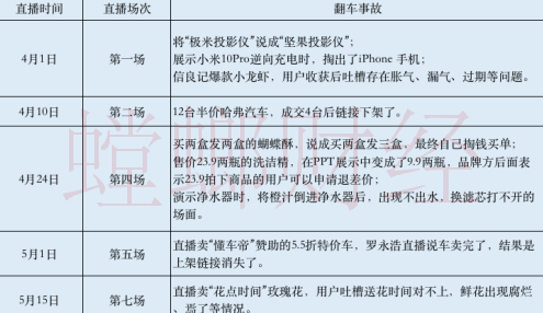 第二、从质量上来看,自罗永浩直播带货以来,其个人翻车的次数和频率,远超淘宝薇娅、李佳琦与快手散打哥、辛巴等头部主播。