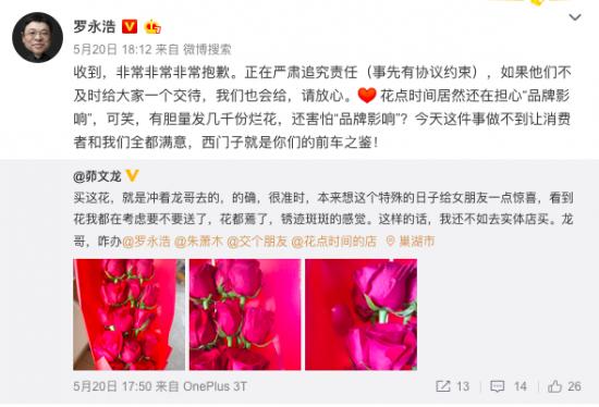 5月15日,罗永浩直播为“花点时间”卖玫瑰,最终在520这天“炸了锅”。大量网友涌进微博吐槽,自己买的花有问题。