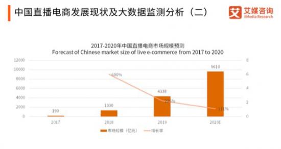 据艾媒咨询数据显示,2020年直播电商市场规模将高达9610亿元,同比增长111%。