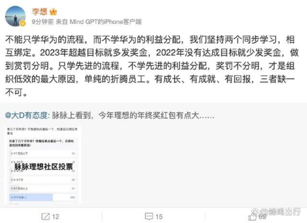 于是兴奋的李想,在市场上大部分企业只给员工1-2个月或暂停年终奖发放的情况下,理想汽车的年终奖达到了4~8个月,李想一度认为理想汽车已经走过了新能源汽车的野蛮发展期,可仅隔数月,理想这家企业似乎又被打回“原型”。