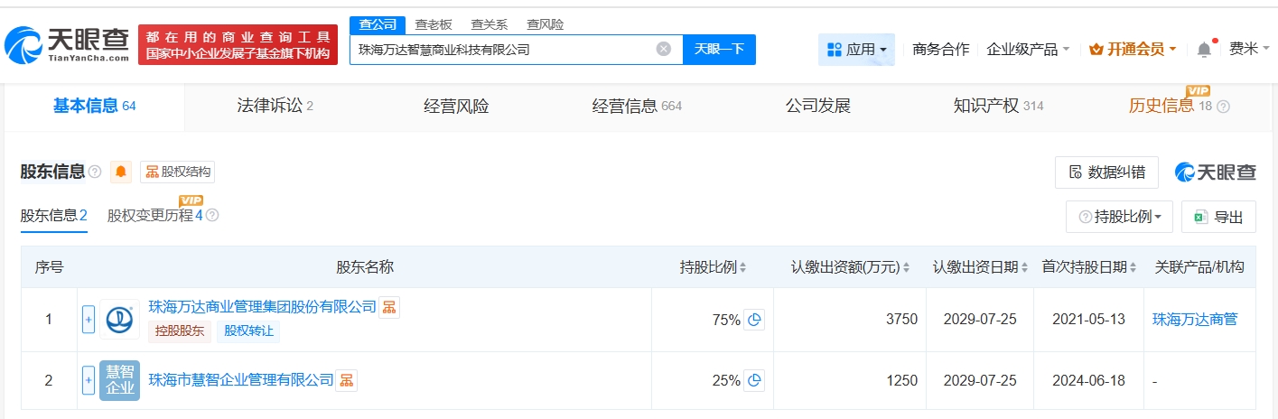 该公司成立于2021年5月,法定代表人为张晶,经营范围包括大数据服务、数据处理服务、信息系统集成服务等,由珠海万达商业管理集团股份有限公司、珠海市慧智企业管理有限公司共同持股。