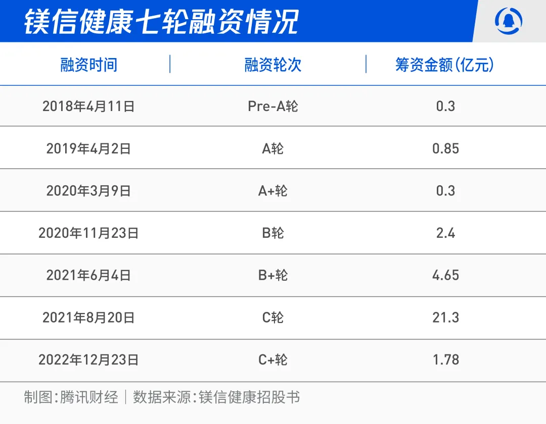 除自身造血能力有待提升外,镁信健康的外部融资节奏也有所放缓。