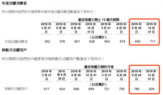 财报显示,2019年(自然年)第四季度,阿里巴巴移动月活跃用户单季度净增3900万,中国零售市场年度活跃消费者达7.11亿,较前三季度增长1800万,其中超过60%的新增年度活跃消费者来自欠发达地区。