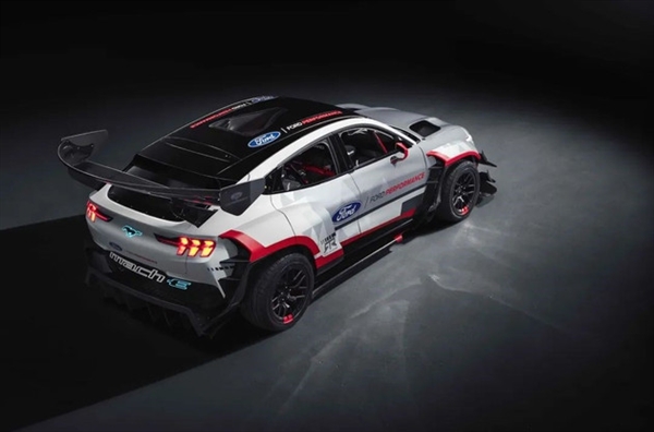 同时,福特官方将该款车称为“公路火箭”,证明了在不消耗一滴汽油的情况下,仅仅依靠电动机同样能爆发出超强的动力输出。这辆原型车是福特全球性能车团队与RTR合作,由一辆白色Mustang Mach-E GT改装而成。