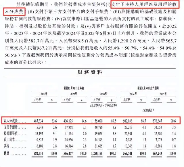 根据米连科技披露的招股书,2024年公司营收达到23.73亿元,而其中令人咋舌的是,近半数的营收(约11.55亿元)被用于收入分成。在这庞大的分成体系中,活跃在平台上的18万名红娘切走了5.02亿元,占比高达营收的21.15%。