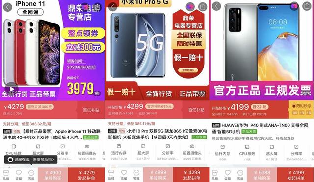 8月6日,拼多多"百亿补贴节"正式开抢,手机自然是重点品类,而看到iPhone 11、华为P40 Pro、小米10 Pro的价格,网友们顿时坐不住了。