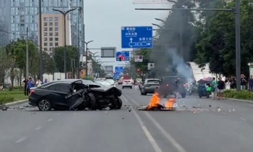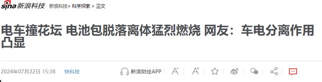 7月22日,新浪财经报道一辆黑色红旗E-QM5新能源汽车,疑似撞击撞了花坛,导致车头严重损毁,甚至车轴都已经变形,电池包也因为撞击直接脱离车体猛烈燃烧。