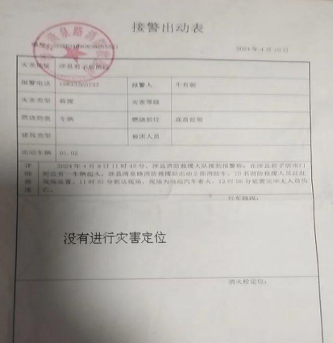 记者在涉县清泉路消防救援站出具的《接警出动表》上看到关于此事件的详细描述: