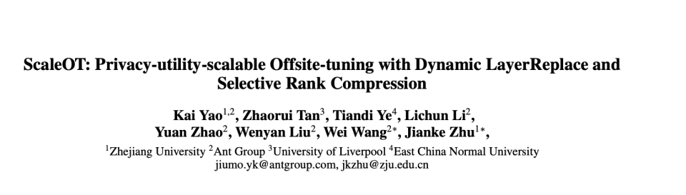 近日,在全球人工智能顶级学术会议AAAI 2025期间,由蚂蚁数科、浙江大学、利物浦大学和华东师范大学联合团队提出了一种创新的跨域微调(offsite-tuning)框架——ScaleOT,该框架可实现在模型性能无损的前提下,将隐私保护效果提升50%。与知识蒸馏技术相比,Scale OT显著降低了90%的算力消耗,为百亿级参数模型的跨域微调提供了一种高效、轻量化的解决方案。