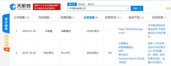 据天眼查相关信息显示,今年3月底,字节跳动曾获得一笔来自老虎基金的投资,公司投后估值已达1000亿美元。对此,有行业观察人士认为,目前字节现金流充裕,此次融资不排除字节跳动为今后深入车联网、AI人工智能、自动驾驶等领域积蓄粮草的可能。