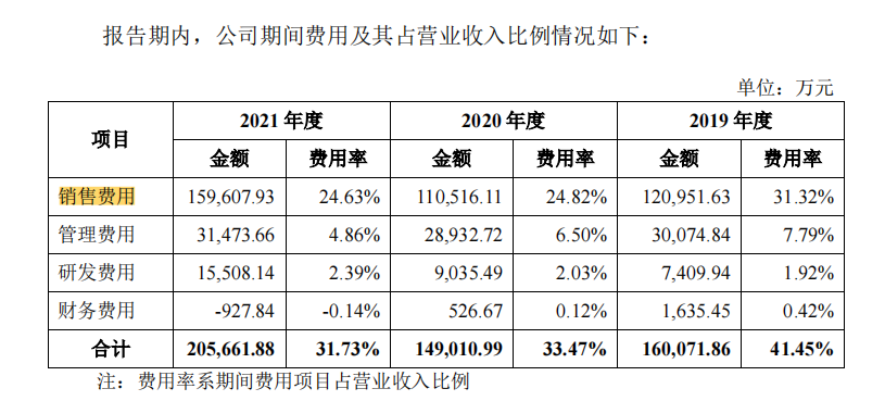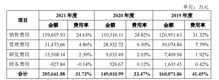 可慕思的招股书显示,慕思从2019年到2021年研发费用共计为3.19亿元,慕思股份的销售费用分别为12.1亿元、11.1亿元、和16亿元。
