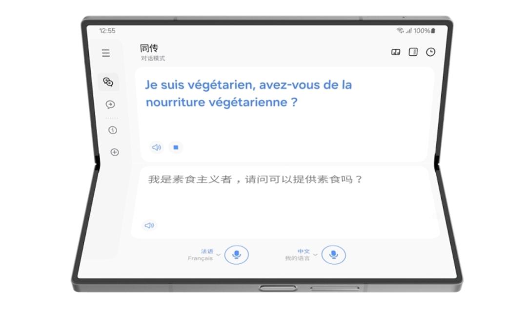 目前,三星Galaxy Z Fold6已支持全球16种主流语言间互译且已扩展至更多第三方应用的通话实时翻译功能,凭借强大的实时翻译功能,用户可以借此轻松应对各种语言交流场景。并且在Galaxy Z Fold6上,三星还进一步挖掘了可折叠屏产品所独有的双屏的特性,带来了可让对话双方方便在主屏和外屏上查看翻译内容的同传功能双屏模式。