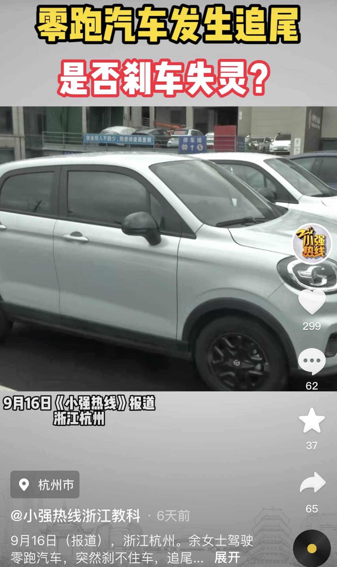 近日,据浙江电视台教育科技频道《小强热线》报道,杭州的一位余女士前两天开着自己的零跑汽车,在路上的时候刹车突然失灵,导致她追尾,她认为这一起事故的发生和零跑汽车的这个刹车功能有关系。