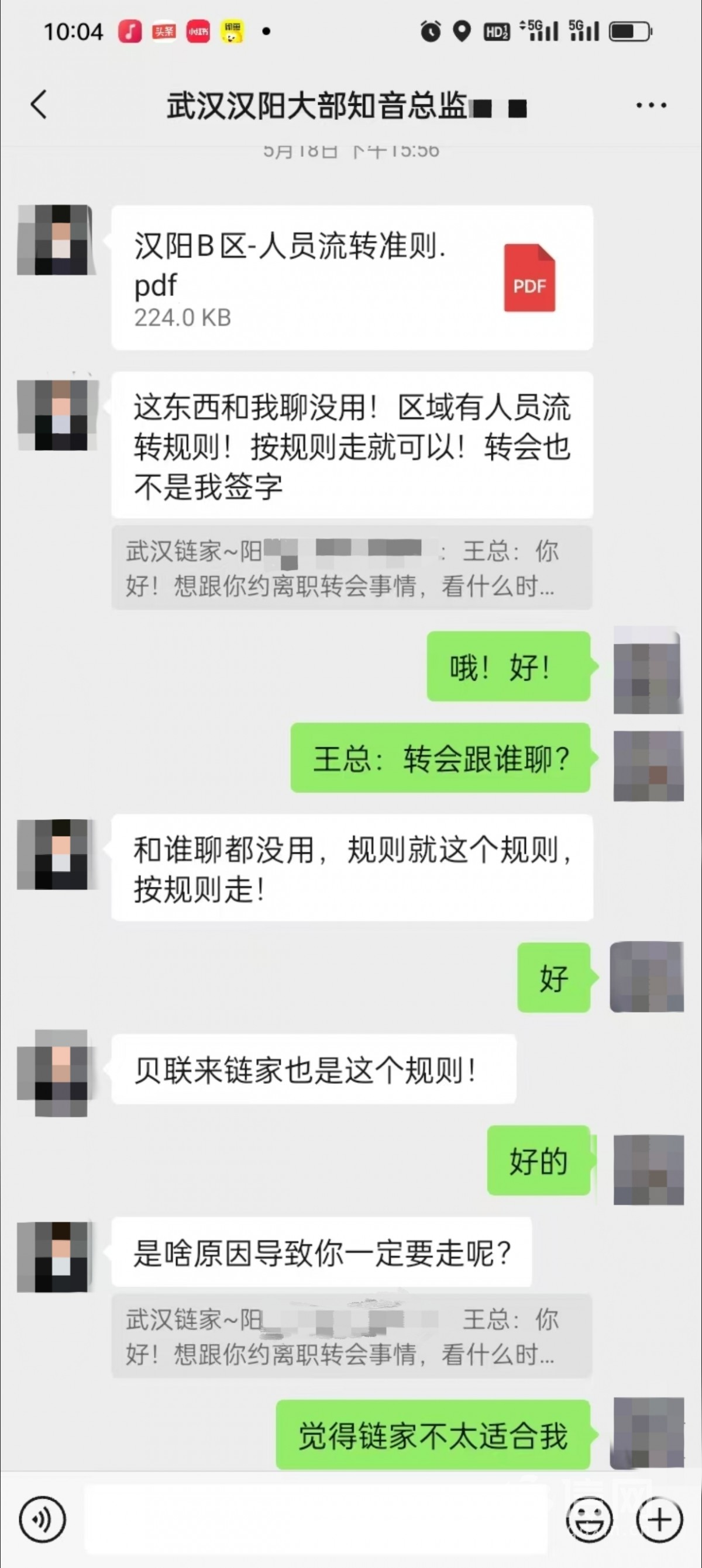 近日,武汉链家的员工阳先生在个人社交账号发布了几则视频,反映自己在链家工作期间遭遇“借薪制”以及离职缴纳“转会费”的双重困扰。