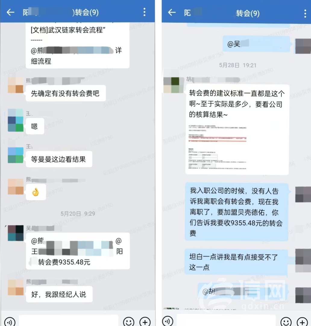 信网7月21日讯近日,武汉链家的员工阳先生在个人社交账号发布了几则视频,反映自己在链家工作期间遭遇“借薪制”以及离职缴纳“转会费”的双重困扰。阳先生向信网表示,自己入职链家武汉门店不到一年,本想辞职在武汉当地开一家德佑房产中介,被告知需要缴纳9355.48元的转会费并退还14000余元的保障金,共计24156.55元,否则将会被公司内部从系统内“拉黑”,无法加盟德佑进行创业。信网随机走访了青岛市内几家链家线下门店了解到,相关情况并非个例,青岛本地链家门店也存在类似制度。对此,贝壳找房(北京)科技有限公司相关工作人员向信网表示,已记录相关问题,会按流程安排专人对该问题进行调查、核实,后续将有工作人员进行答复。