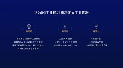 华为5G工业模组也是国内首款核心器件自主可控的5G工业模组,华为5G工业模组自上个月10月23日发布以来,华为5G工业模组专为工业环境打造。