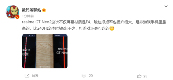 据徐起最新发布的信息透露称:“别了,我的游戏手柄!操控天花板!”,这也就是说,全新的realme真我GT Neo2将拥有顶尖的操控体验,甚至有望超越游戏手柄。值得注意的是,此前知名数码博主@数码闲聊站 此前表示,“realme GT Neo2这次不仅屏幕材质是E4,触控报点率也提升很大,是非游戏手机里最高的,比240Hz的机型高出不少,打游戏还是可以的”。
