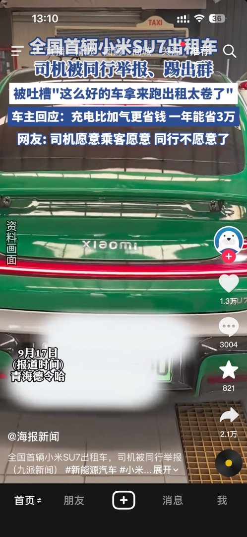 全国首辆小米SU7出租车投入运营 司机一天就被同行举报:太卷了汽车
