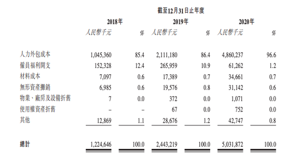 从招股书来看,人力成本和营销成本是顺丰同城运营成本的大头,也是短时间内难以翻越的大山。数据显示,顺丰同城2020年的人力外包成本为48.6亿元占营业成本的96.6%,对比之下,同年其营收才为48.4亿元。
