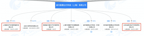 威马曾作价1500万全资收购了上海俊优汽车租赁服务有限公司,威马汽车全资收购一家名为北京金凯鸿达的汽车租赁公司,收购、合资成立共计4家汽车租赁公司。