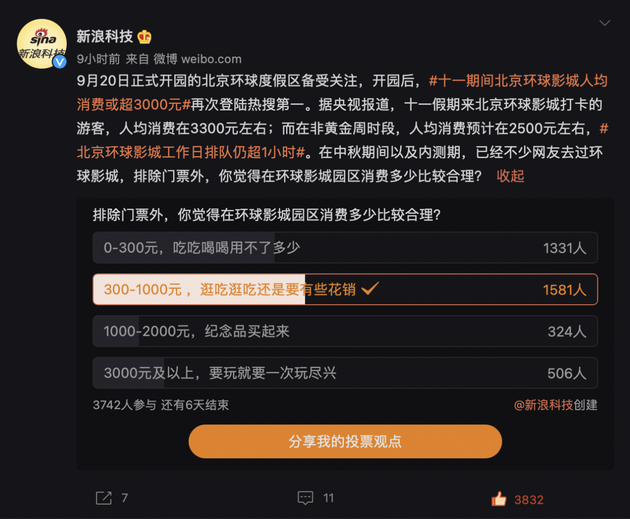 而在新浪科技发起的一份近4000人参与的问卷调查中,除门票外,有超过77%的用户认为“千元以下消费才是合理标准”,只有13%用户选择了“3000元以上消费玩得尽兴”。